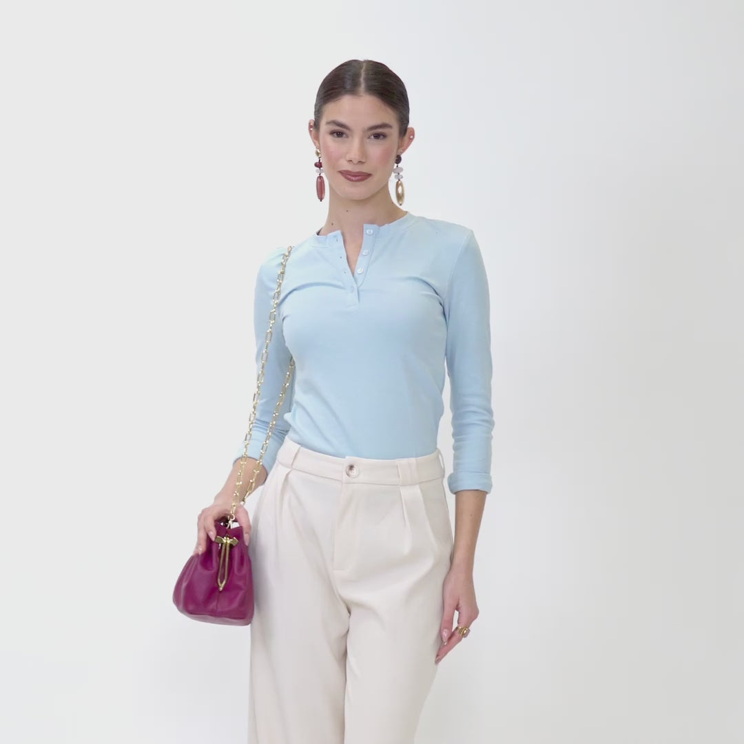 La Sophie Mini riprende il design iconico della Sophie in una versione più compatta, pensata per accompagnare con leggerezza ogni occasione.