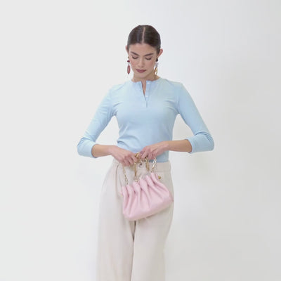 La Sophie Mini riprende il design iconico della Sophie in una versione più compatta, pensata per accompagnare con leggerezza ogni occasione.