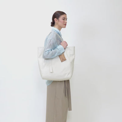 La struttura ampia e leggermente destrutturata dona movimento alla silhouette, mantenendo proporzioni armoniose e una presenza raffinata. Pensata per un utilizzo quotidiano, offre un interno generoso che permette di organizzare con praticità tutto il necessario.