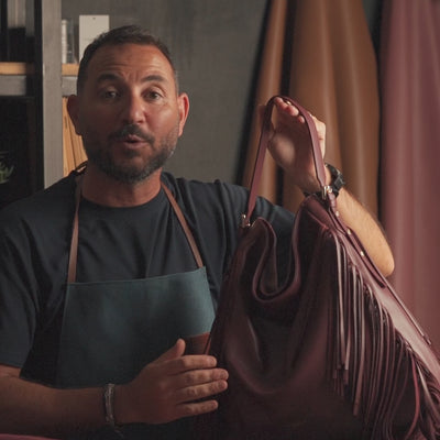 Una borsa capiente e versatile, che porta con sé il fascino della pelle pieno fiore e l’energia dinamica delle frange, simbolo inconfondibile di Farenella.